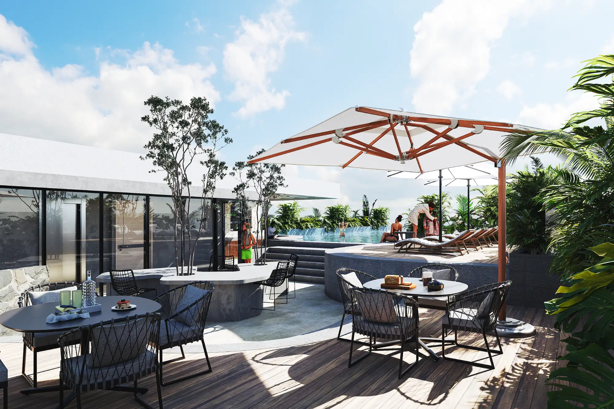 Torre de 10 niveles, frente al mar, con departamentos TODO INCLUIDO de 1 y 2 habitaciones, este residencial combina un estilo de vida nautico y relajado con sus hermosas vistas a la playa, en segunda línea de playa, ofrece un club de playa para sus residentes. Con amenidades como albercas y asadores, es una muy buena opción para second home o inversión inteligente, ya que se encuentra ubicado en Costa Mujeres, la nueva zona con crecimiento proyectado de Cancún.